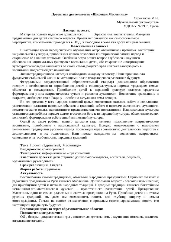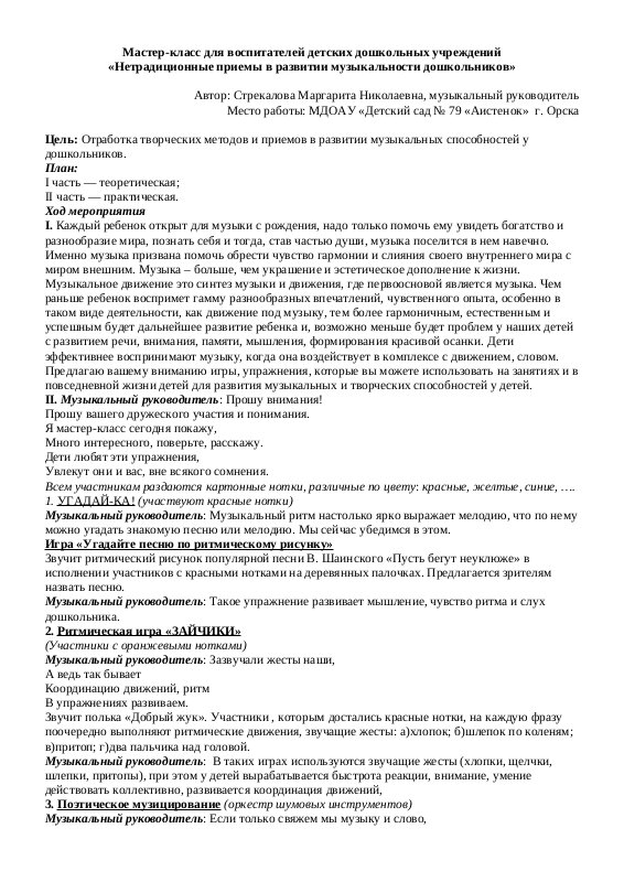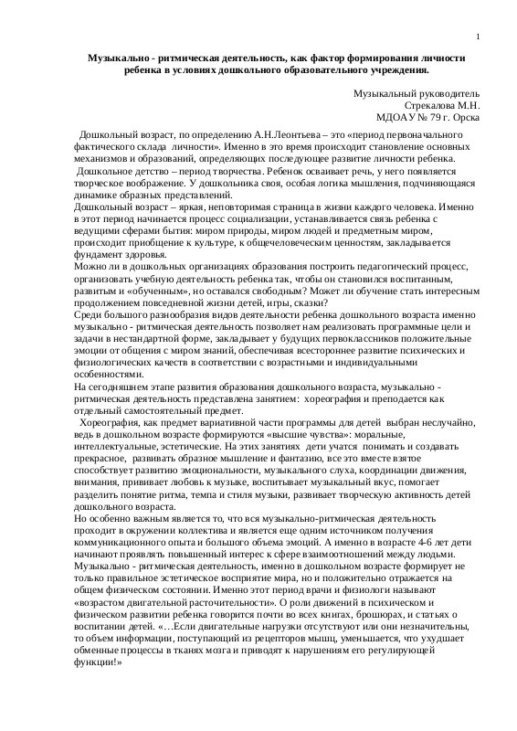 Сообщение на педсовете "Музыкально - ритмическая деятельность, как фактор формирования личности ребенка в условиях дошкольного образовательного учреждения"